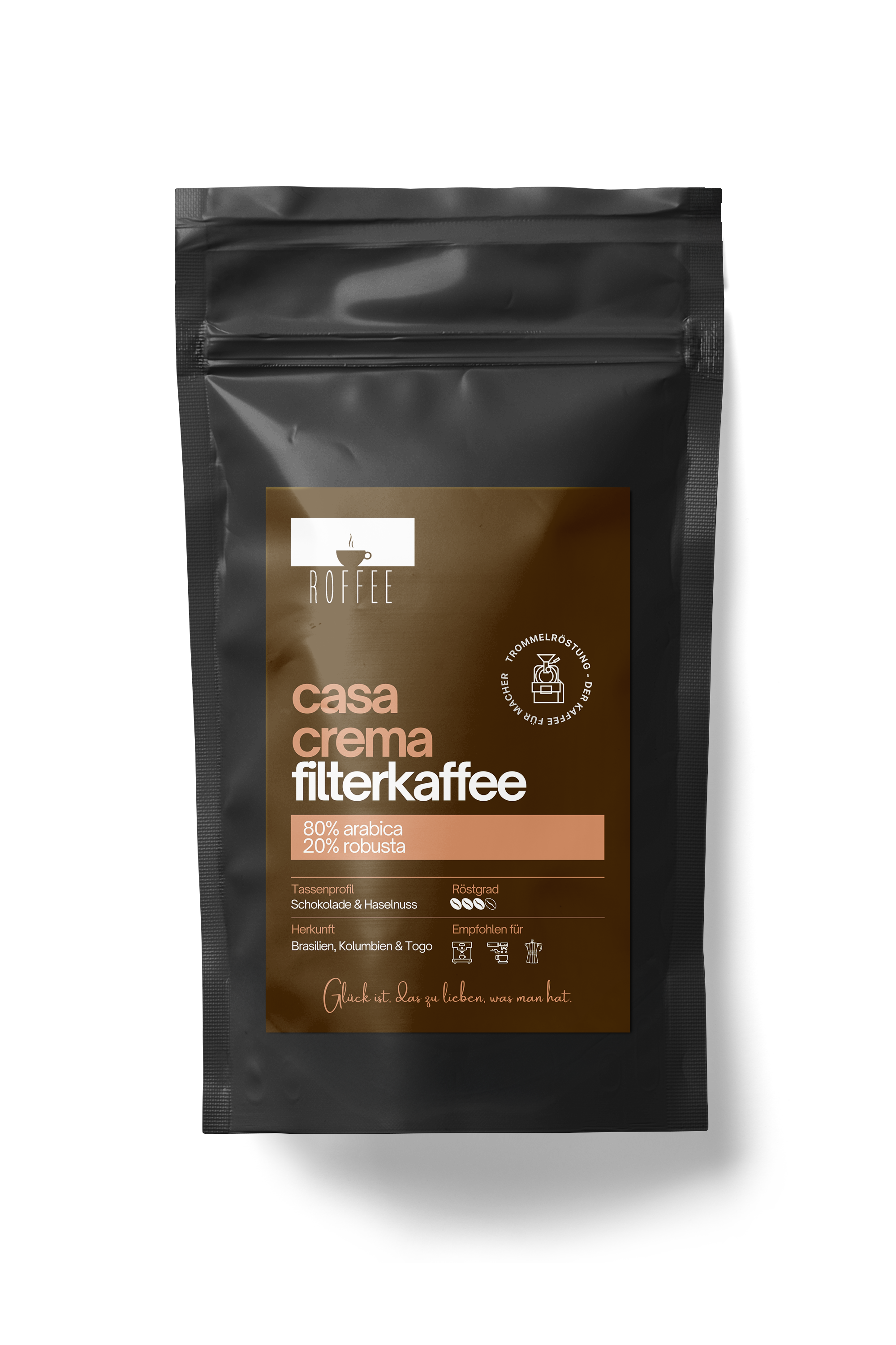 Casa Crema ist die Einladung, jeden Tag mit einem samtigen Kaffee zu beginnen. Die brasilianische Sanftheit, die kolumbianische Harmonie und der volle Körper des togolesischen Robusta verbinden sich zu einem ausgewogenen Genussmoment für zu Hause.