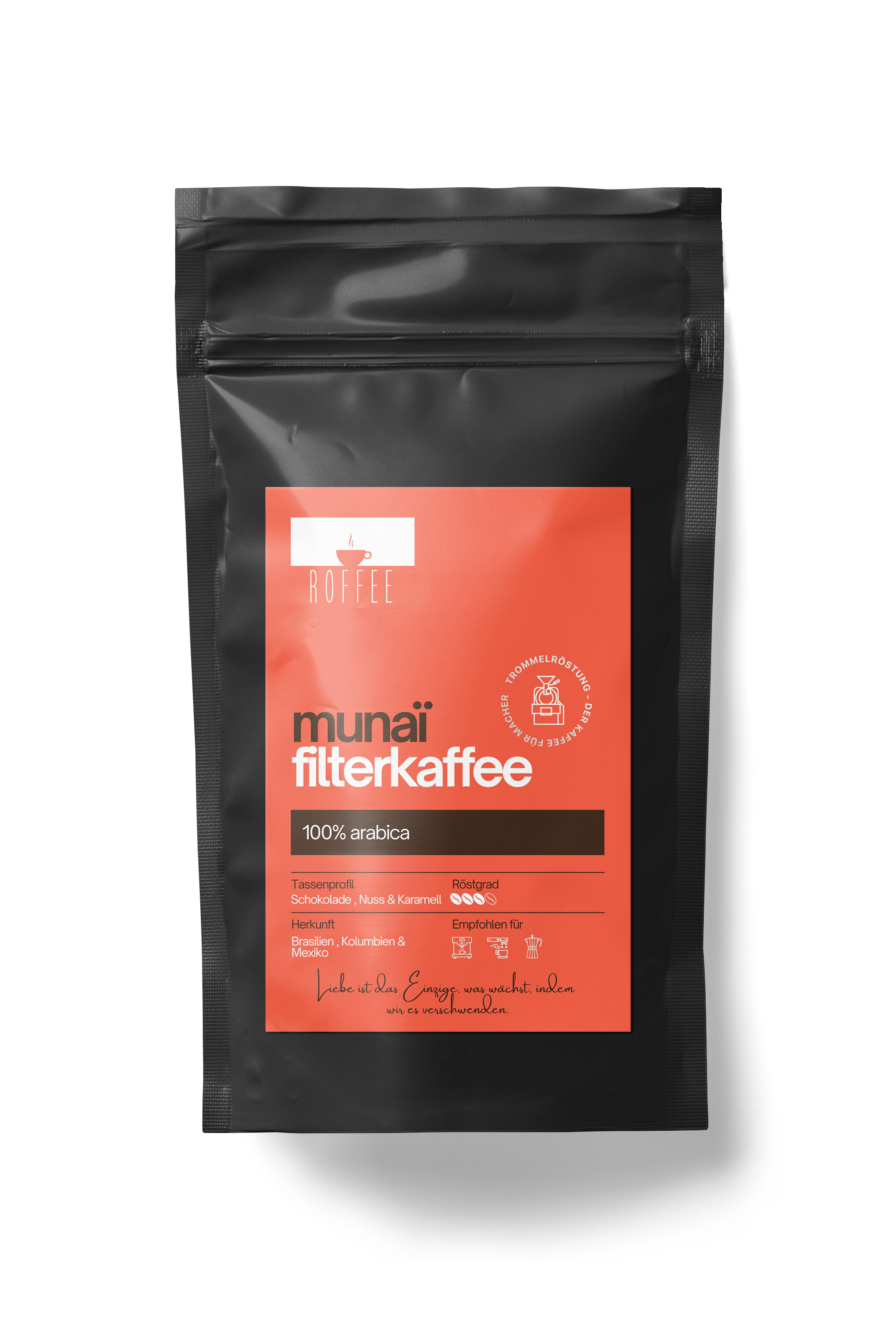 MUNAÏ bedeutet „Liebe“ in der Sprache der Andenvölker. Diese Mischung ist eine Herzensangelegenheit: Mexikanische Sanftheit, kolumbianische Tiefe und brasilianische Wärme verschmelzen zu einem Filterkaffee, der in jeder Tasse Verbundenheit und Genuss schenkt.
